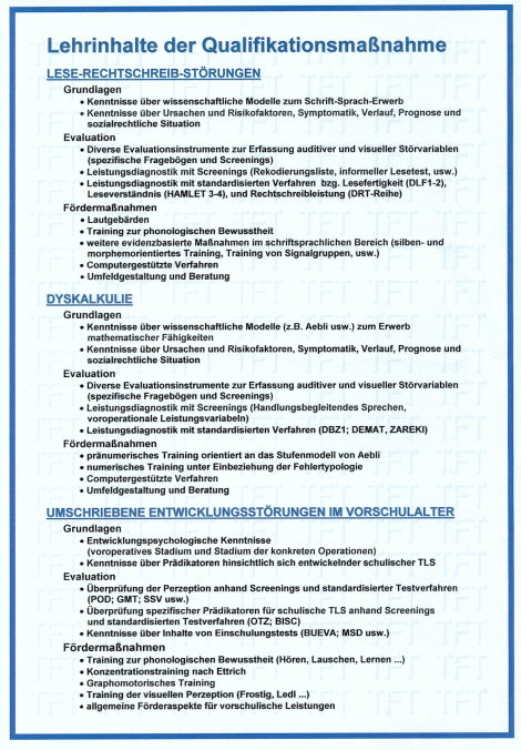 Evaluation, Teilleistungsstörungen